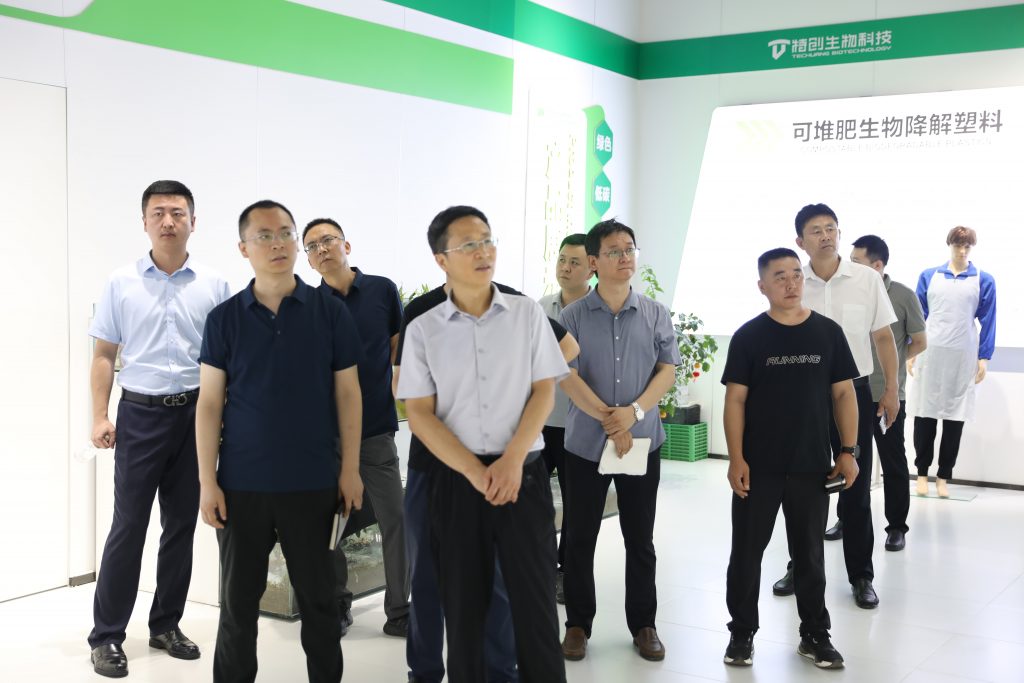 郜善軍一行首先來到公司產(chǎn)品展廳,詳細(xì)了解了河南特創(chuàng)豐富的可降解產(chǎn)品系列,對(duì)公司產(chǎn)品的技術(shù)領(lǐng)先性、環(huán)保效益及市場(chǎng)前景給予高度評(píng)價(jià)。他指出,河南特創(chuàng)在可降解材料領(lǐng)域的深耕,契合全球環(huán)保潮流與國(guó)家綠色發(fā)展戰(zhàn)略,前景廣闊。隨著環(huán)保意識(shí)的提升與政策扶持,可降解材料市場(chǎng)將迎來爆發(fā)式增長(zhǎng),河南特創(chuàng)的技術(shù)實(shí)力與市場(chǎng)拓展能力將成為行業(yè)發(fā)展的重要驅(qū)動(dòng)力。