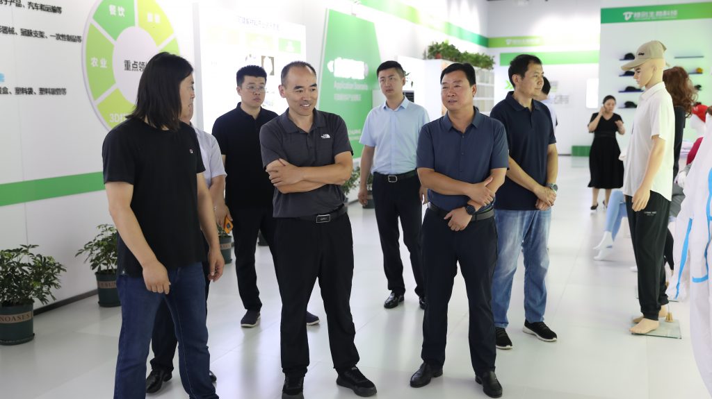 在公司領(lǐng)導(dǎo)的陪同下,魯軍董事長、程小軍行長一行首先參觀了公司的產(chǎn)品展廳、研發(fā)中心,近距離感受了河南特創(chuàng)在生物基可降解領(lǐng)域的創(chuàng)新成果。通過現(xiàn)場講解與演示,考察團對河南特創(chuàng)在技術(shù)創(chuàng)新、產(chǎn)品研發(fā)及市場應(yīng)用方面的能力有了更加直觀和深入的了解。